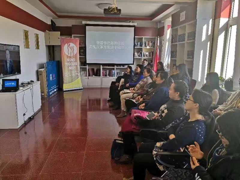 中心组织学院师生集体收看庆祝改革开放四十周年大会活动。学院党总支书记李春丽、院长黄玫,副院长戴桂菊、何芳及全院二十余名师生代表集体收看了大会直播并展开了深入学习和讨论,活动由李春丽书记主持。