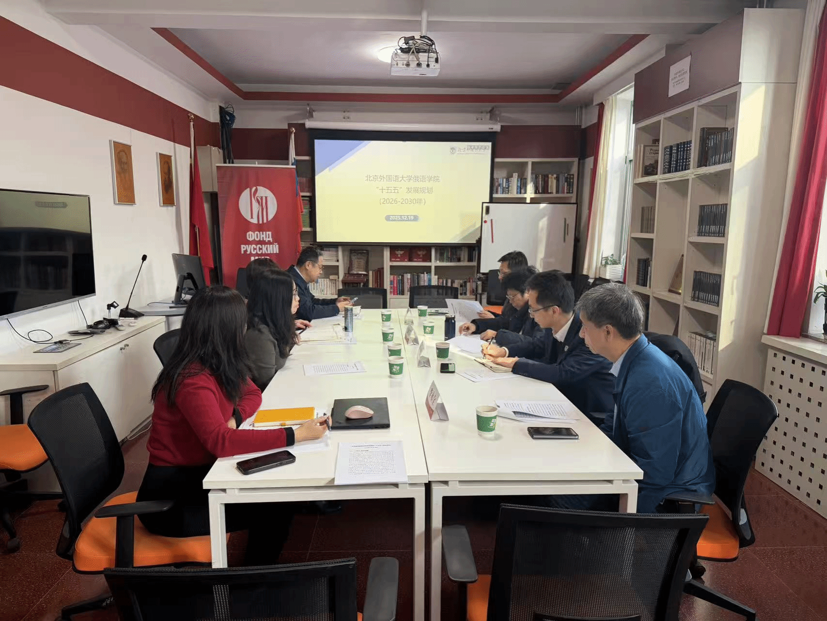 学科建设目标,深化区域国别研究优势,加强在俄罗斯及中亚五国的教育、人文与智库合作,主动服务新时代中俄全面战略协作伙伴关系及中国—中亚命运共同体建设。文秋芳教授指出,规划要更加突出学院的比较优势与特色亮点,在复合型人才培养方面形成可辨识的优势与差异化竞争力;科研布局要从“量的积累”迈向“质的突破”,以战略导向引领标志性成果产出。李永全研究员强调,学院要在构建中国特色语言教育与学科评价体系中发挥引领作用,通过教材建设、话语体系创新与国际传播,提升成人影视片