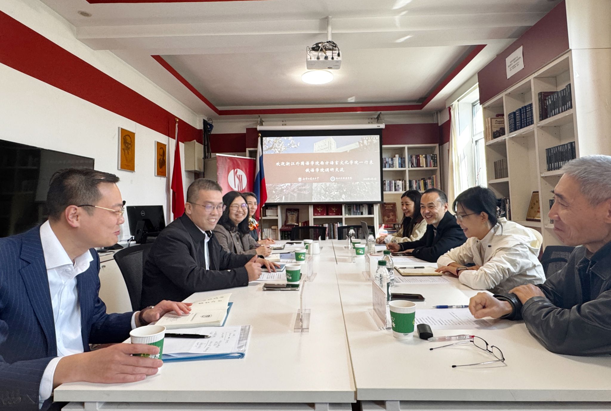 交流中,双方达成初步合作意向。在区域国别研究方面,拟联合发起“斯拉夫及中亚研究智库联盟”;在国家重大课题申报上,浙外全职特聘教授王松亭分享古罗斯编年史翻译研究成果,双方探讨联合申报课题的可行性;在一流专业建设上,双方就“理解当代中国”多语种教材编写使用进行了探讨,强调将课程学习和国情调研相结合,计划开展“走进浙江”两院成人影视片联合暑期社会实践活动。此外,双方就产教融合、社会服务与国际会议举办交换了意见。